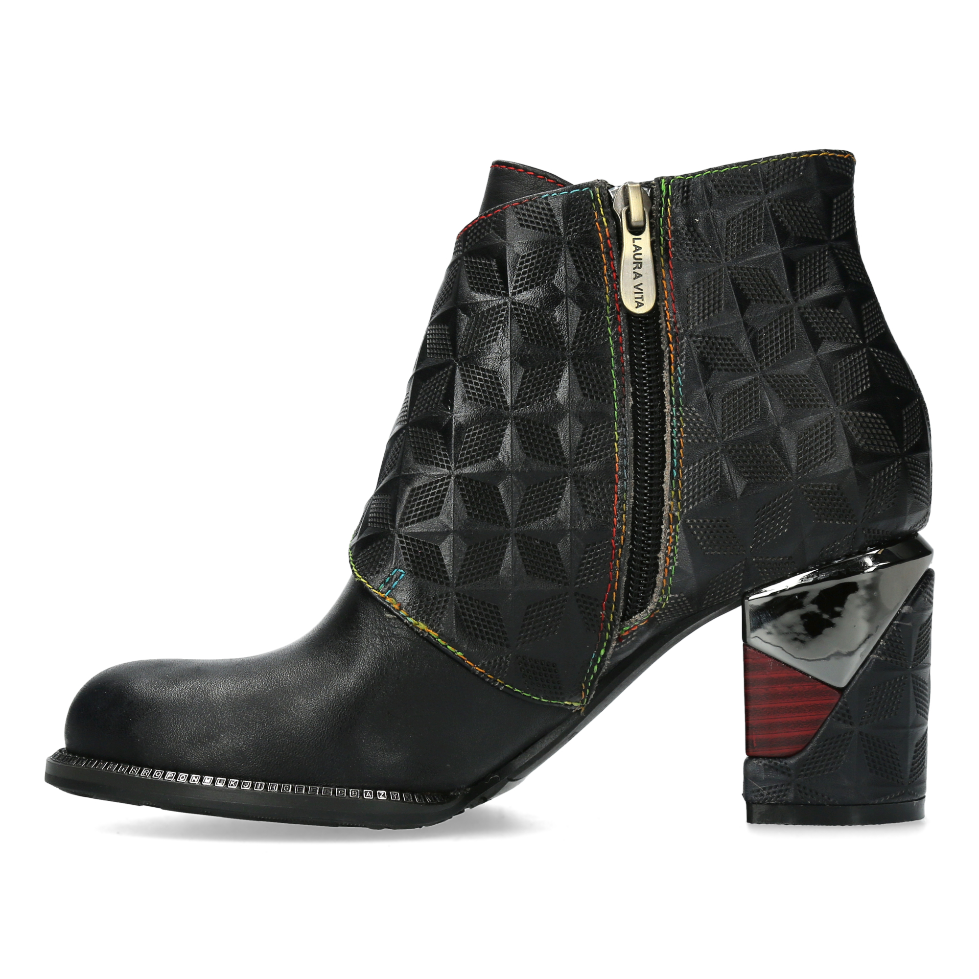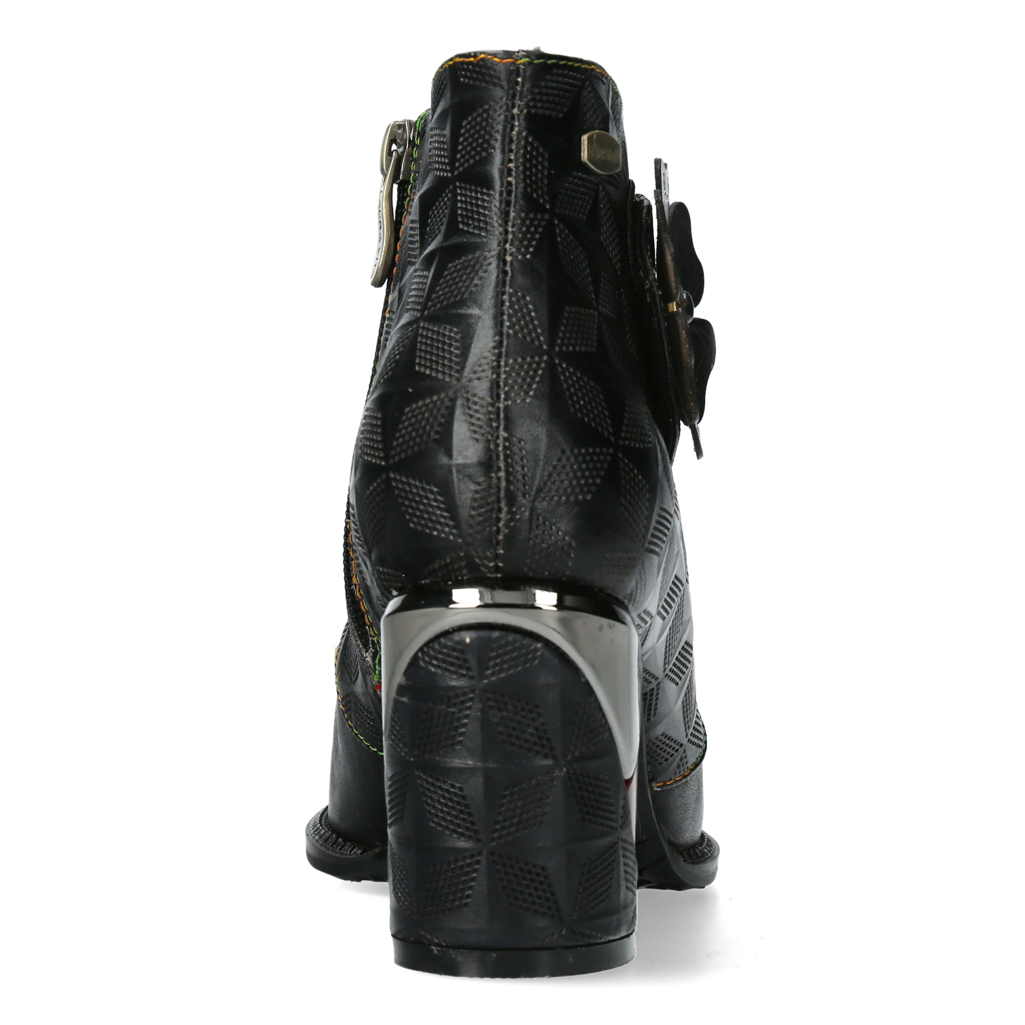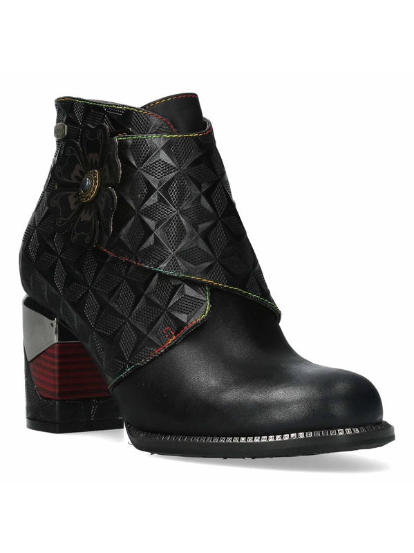 Botines de piel de alta calidad con diseño original y cierre con cremallera y velcro. Tacón de bloque único que aporta estabilidad y estilo.
