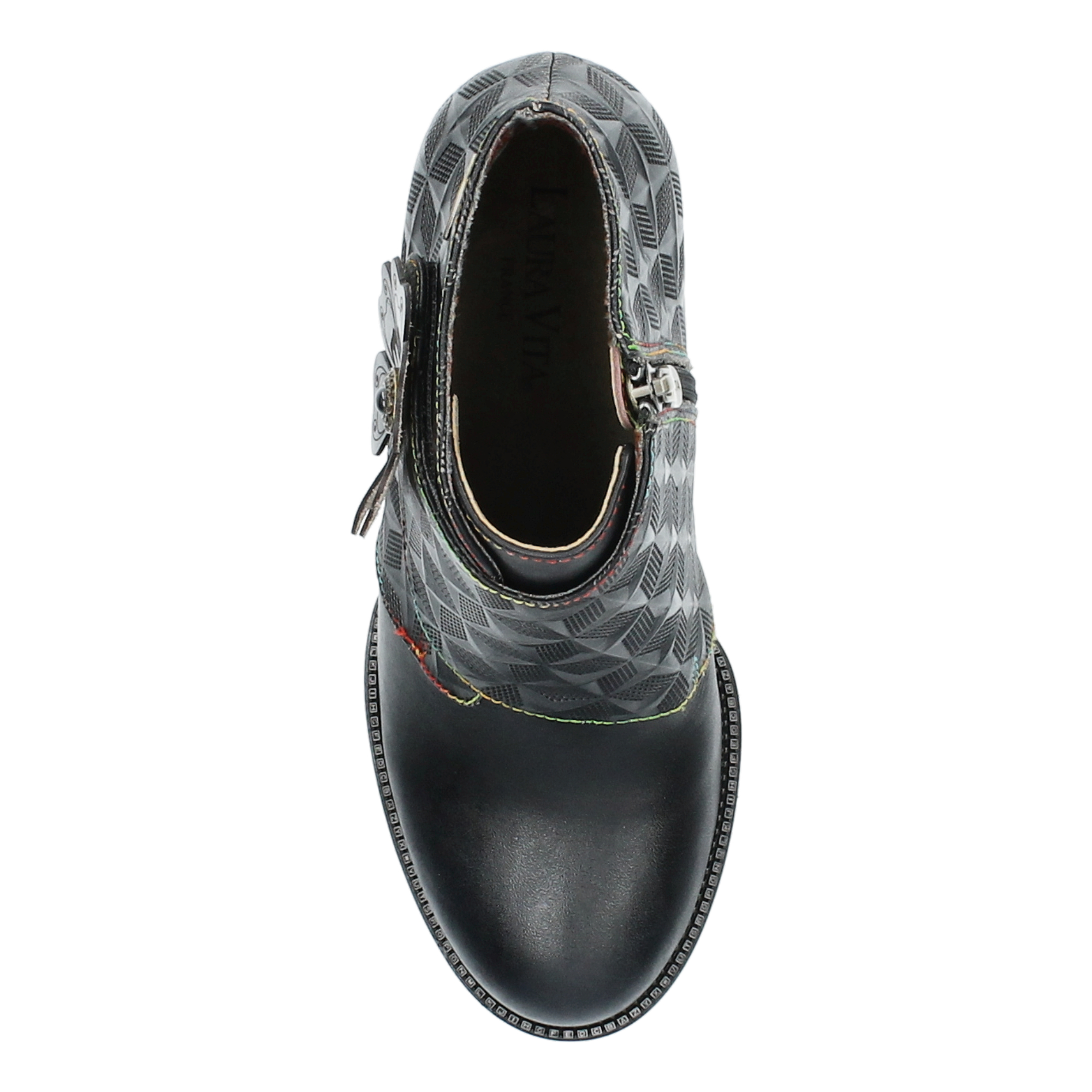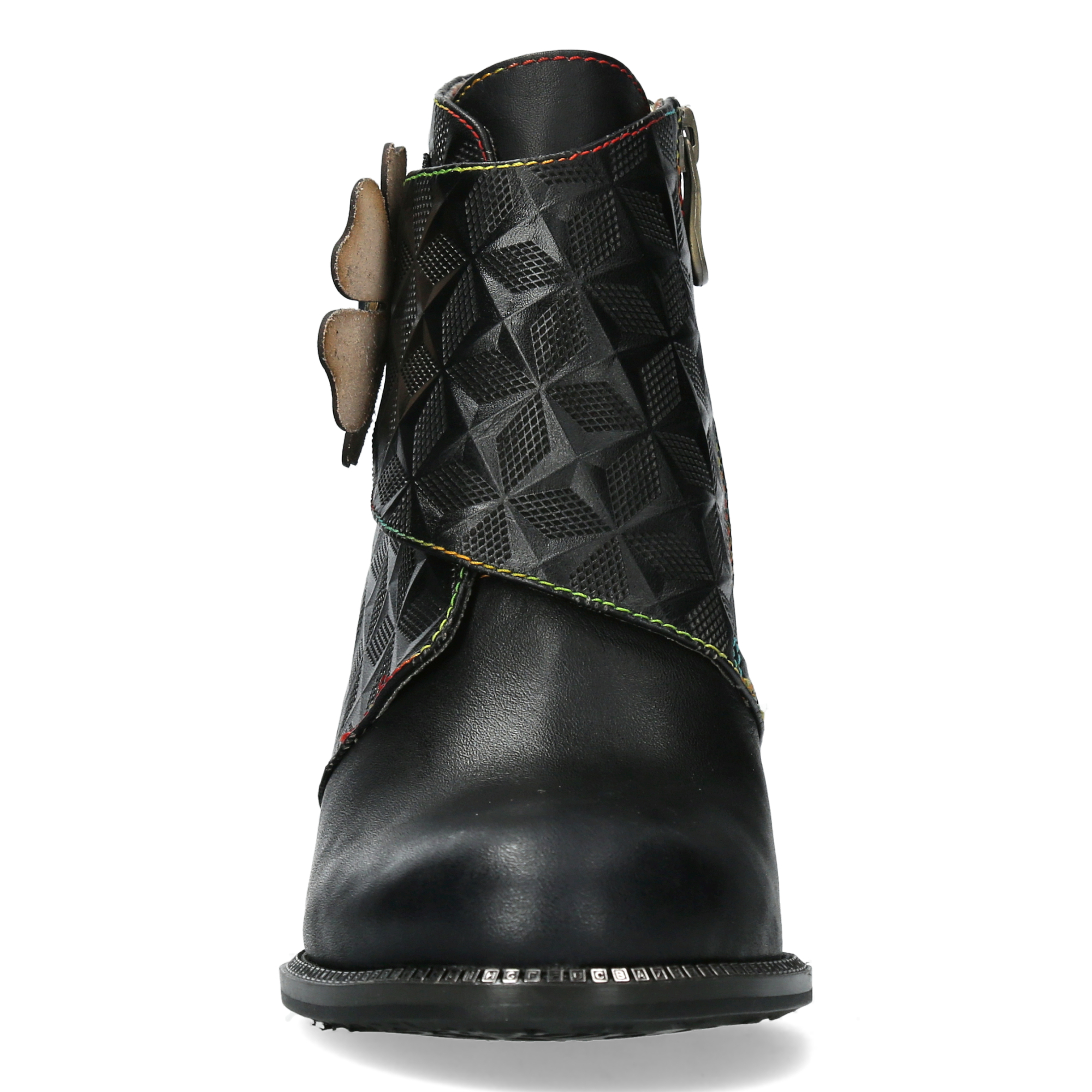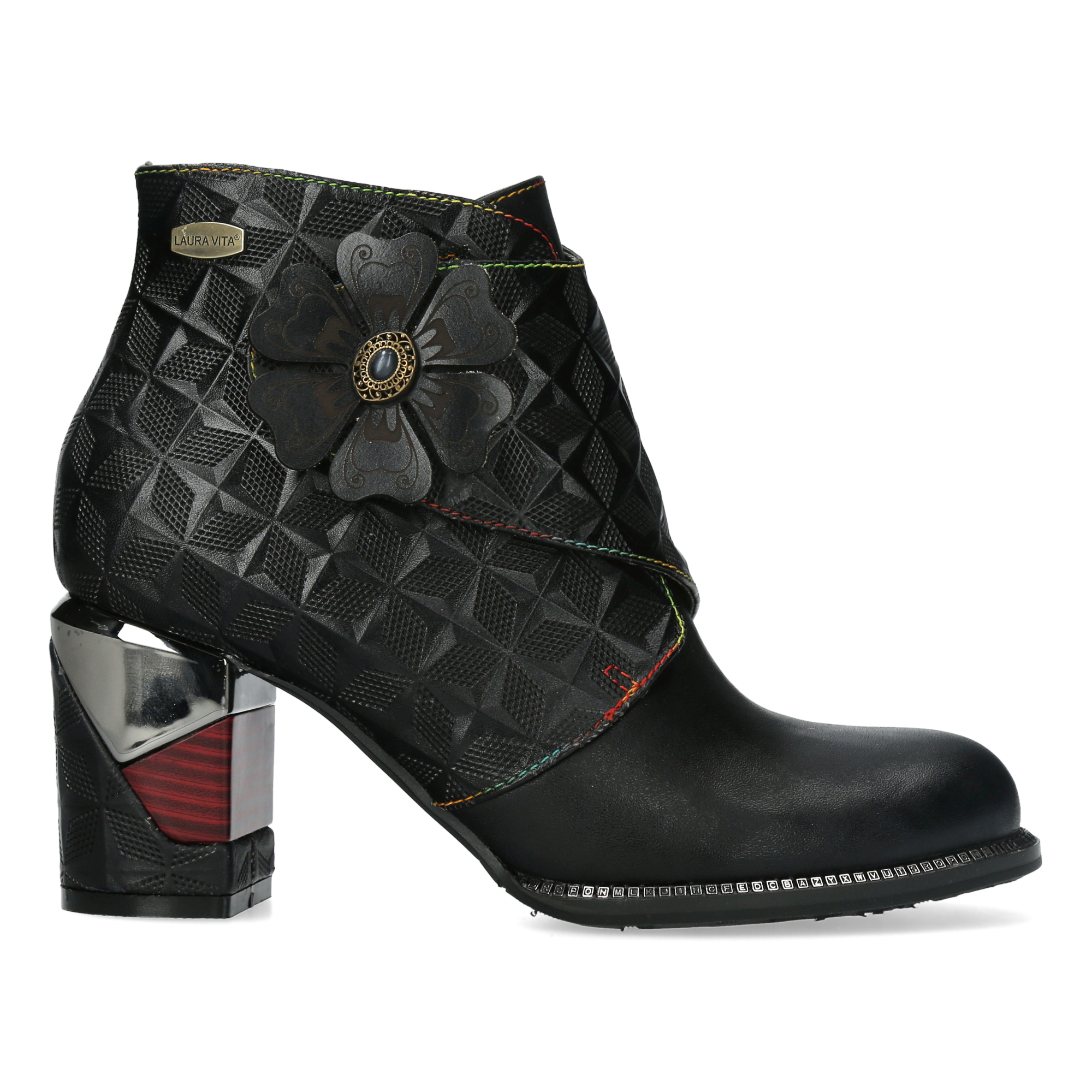 Botines de piel de alta calidad con diseño original y cierre con cremallera y velcro. Tacón de bloque único que aporta estabilidad y estilo.