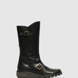 Bota de piel negra con hebilla