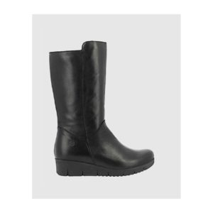 Bota de piel negra con cuña