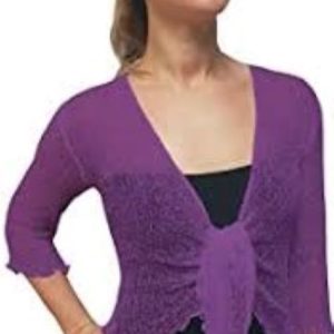 Chaqueta corta lila de crochet