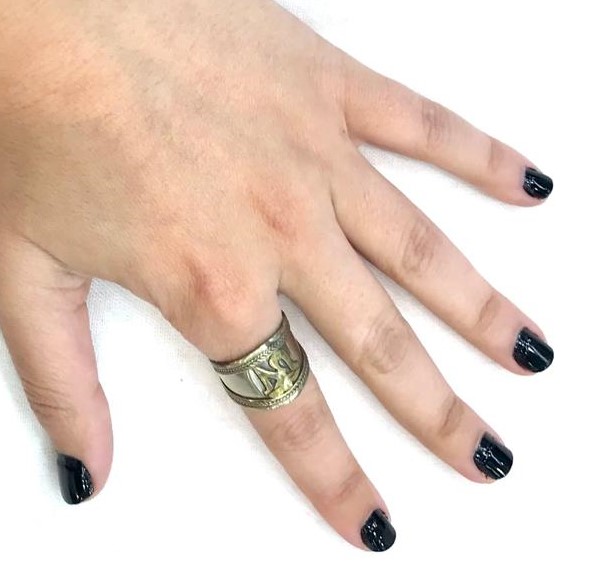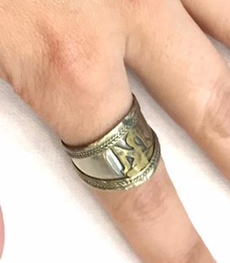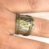 Anillo abierto con grabado de OM para ajustar al tamaño de dedo, de color latón y plata.