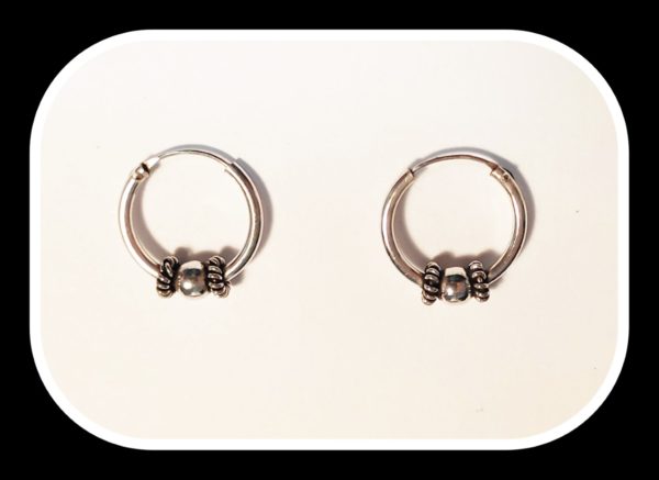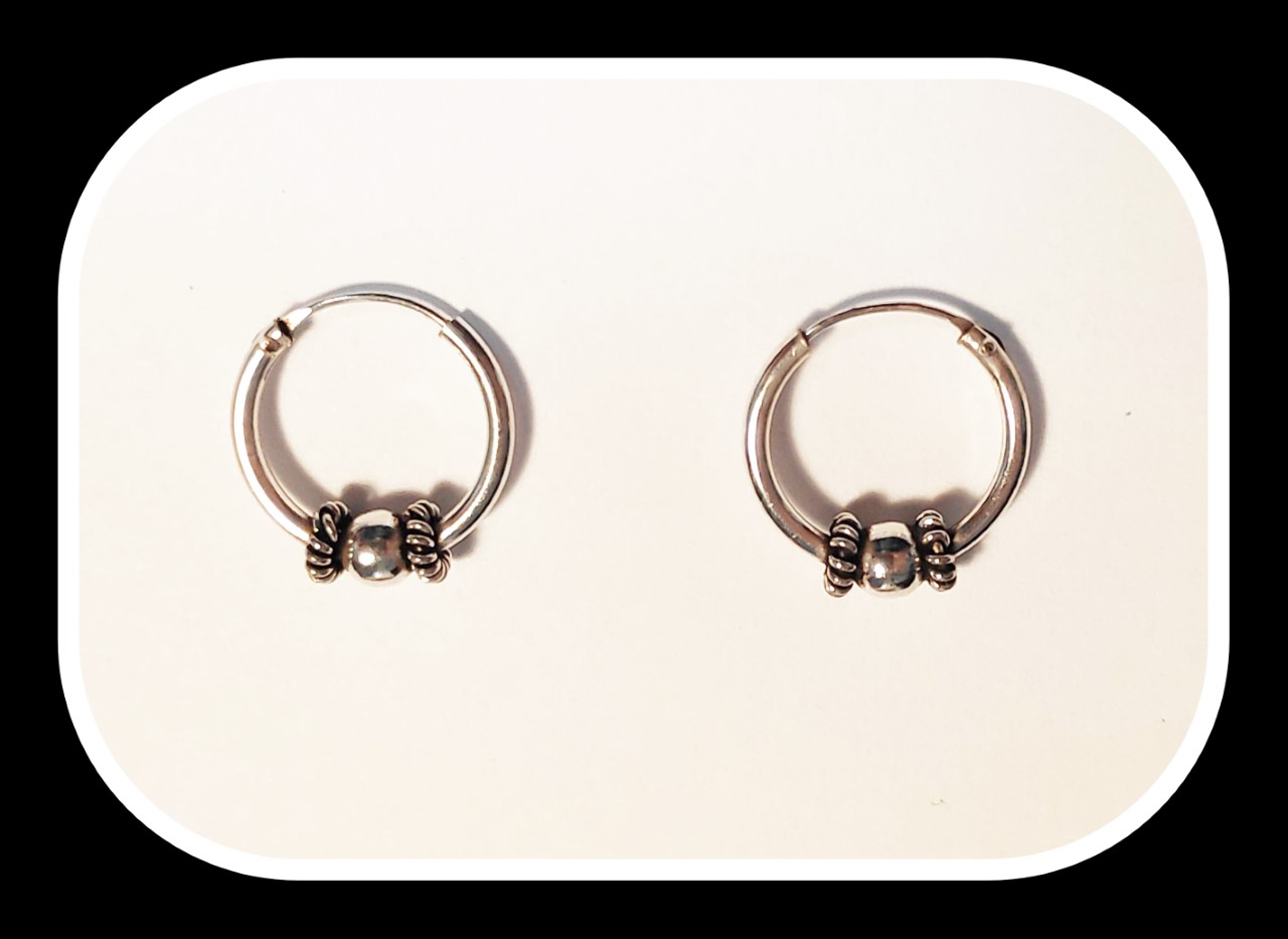Aros de plata de ley 92.5 , de tamaño pequeño estilo étnico. Pendiente elegante y discreto, unisex, muy fácil de combinar con cualquier otro pendiente o aro, se puede comprar el par o la unidad.