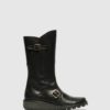 Creado por Fly London esta bota de piel negra con hebilla, un modelo de moda para mujer divertidas y modernas.