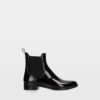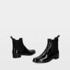 Botines de agua color negro, charole. Con elementos elásticos en los laterales y tirador trasero, para mejor comodidad.