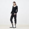 Camiseta básica lisa de corte regular, escote de pico con tres botones y manga larga. Color negra, disponible en varios colores. Composición: 100% Algodón.