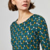 Nuestra camiseta de cuello redondo con puño y con detalle verde en el estampado de la marca Surkana.