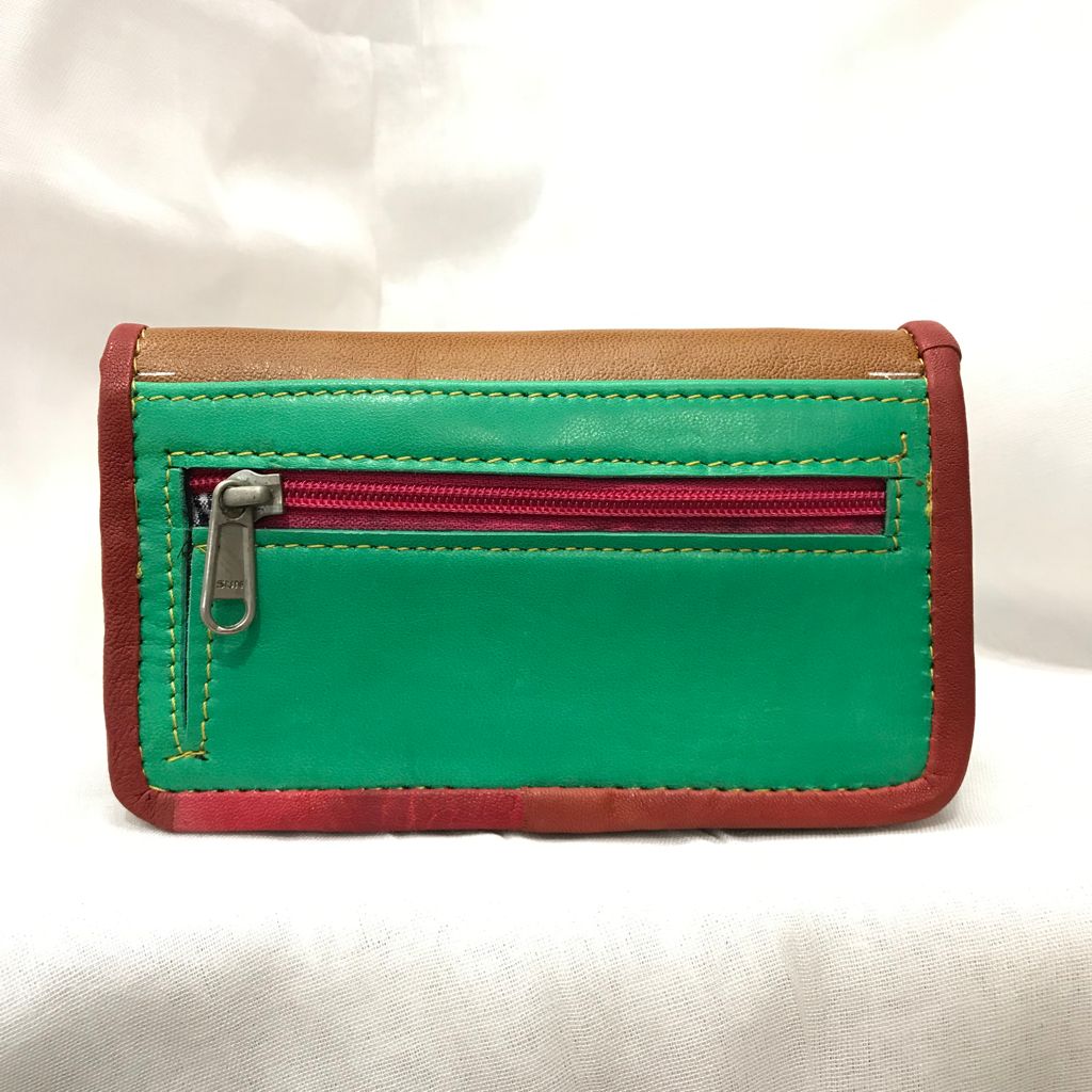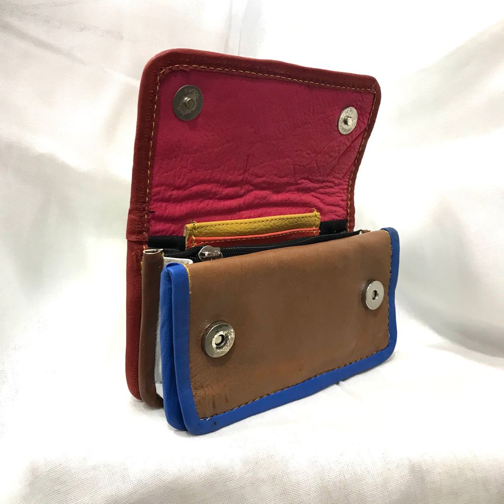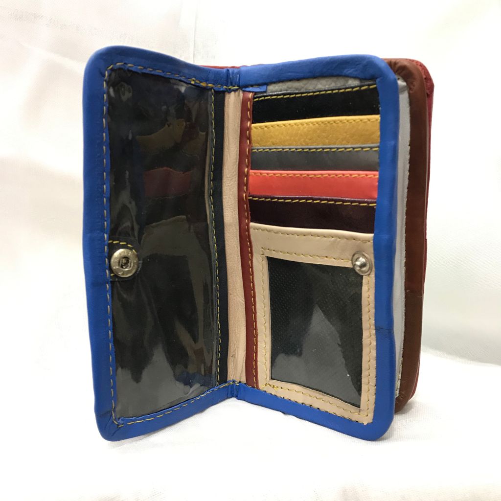 Cartera billetera hecho a mano de piel, multicolor. Con muchos compartimientos interiores: dni, bonobus, billetera y otros.