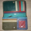 Composiciòn General: 9 bolsillos porta tarjetas, 2 bolsillo para los billetes, 1 bolsillo transparente portafoto, 1 bolsillo externo, 1 interno portamonedas y 2 bolsillos portadocumento.