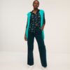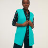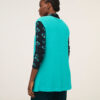 Chaleco turquesa liso de punto, abierto.