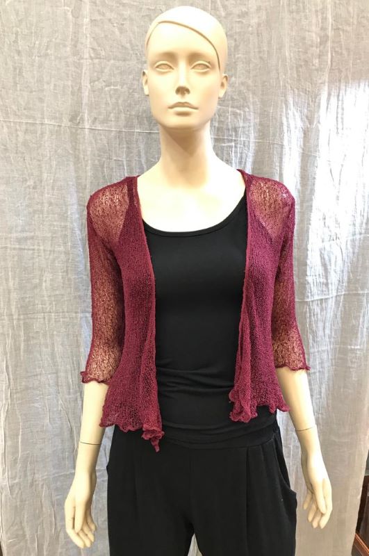 Nuestra chaqueta corta de croché granate está hecho de material de rayón suave y transpirable. Es perfecta para cualquier ocasión es el accesorio perfecto el diseño frontal de lazo hace que esta chaqueta de punto transparente sea una capa rápida y fácil; perfecta y bonita cobertura para los brazos o vestidos de corte bajo. Mangas favorecedoras de tres cuartos y bordes con volantes naturales que acentúan la silueta femenina; se puede llevar atado alto, abajo o sin atar.