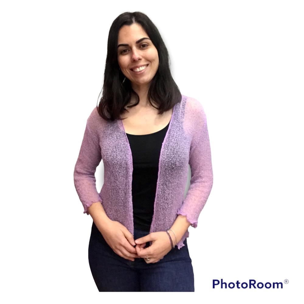 Nuestra chaqueta corta lila de crochet está hecho de material de rayón suave y transpirable. Es perfecta para cualquier ocasión, el diseño frontal de lazo hace que esta chaqueta de punto transparente sea rápida y fácil de poner; una perfecta y bonita cobertura para los brazos. Tiene una mangas favorecedoras de tres cuartos y bordes con volantes naturales que acentúan la silueta femenina; se puede llevar atado alto, abajo o sin atar.