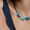 Nuestro collar con tono de esmalte en azul y verde con acabado y cadena en color plata. Fabricado en materiales totalmente antialergicos sin níquel, sin cadmio, sin plomo.