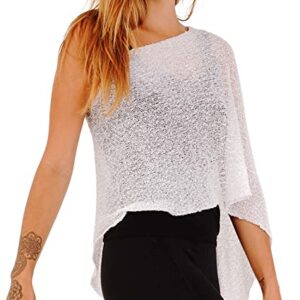 Versátil y liso: el poncho de punto de ganchillo ligero verde y transparente está hecho de material de rayón suave y transpirable. Este poncho único se puede llevar de varias maneras. Un poncho que complementará cualquier atuendo que tengas. Con su estilo asimétrico, puedes llevarlo sobre ambos hombros o convertirlo fácilmente en una parte superior de un hombro. Ideal para colocar sobre una parte superior de un vestido o como encima de un traje de baño para cubrir el bikini.