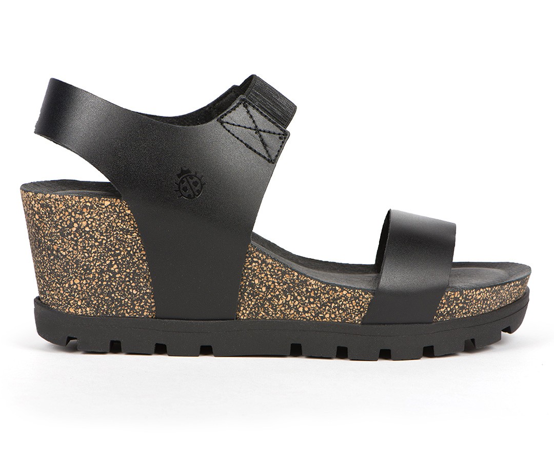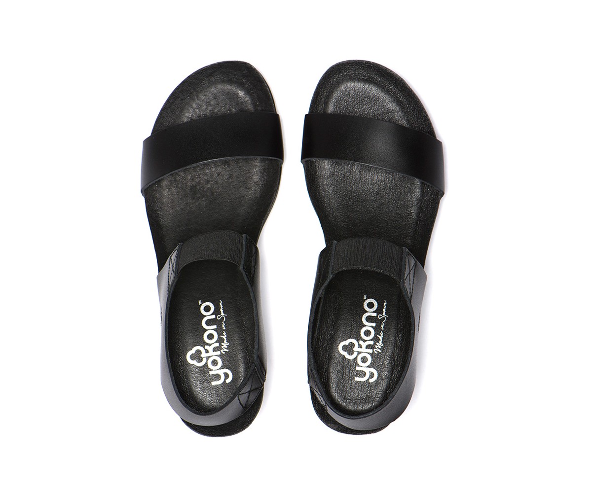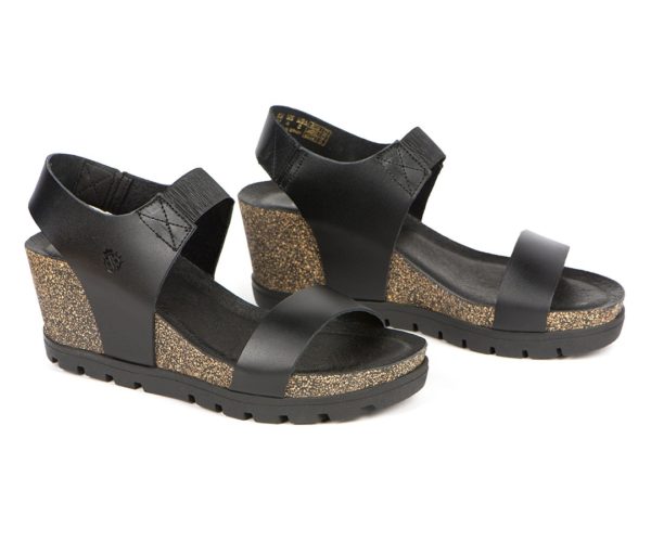 Sandalia de plataforma alta de cuero de color negro y suela a juego. Elegantes y fácil de combinar …