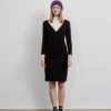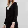 Vestido con pliegue fruncido lateral de color negro liso y corte evasé.con escote pico de manga larga negro, Composición: Viscosa 95% Elastano 5%.
