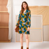 Nuestro vestido hojas de otoño tiene un corte evasé y un escote de cuello pico.