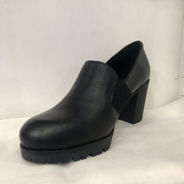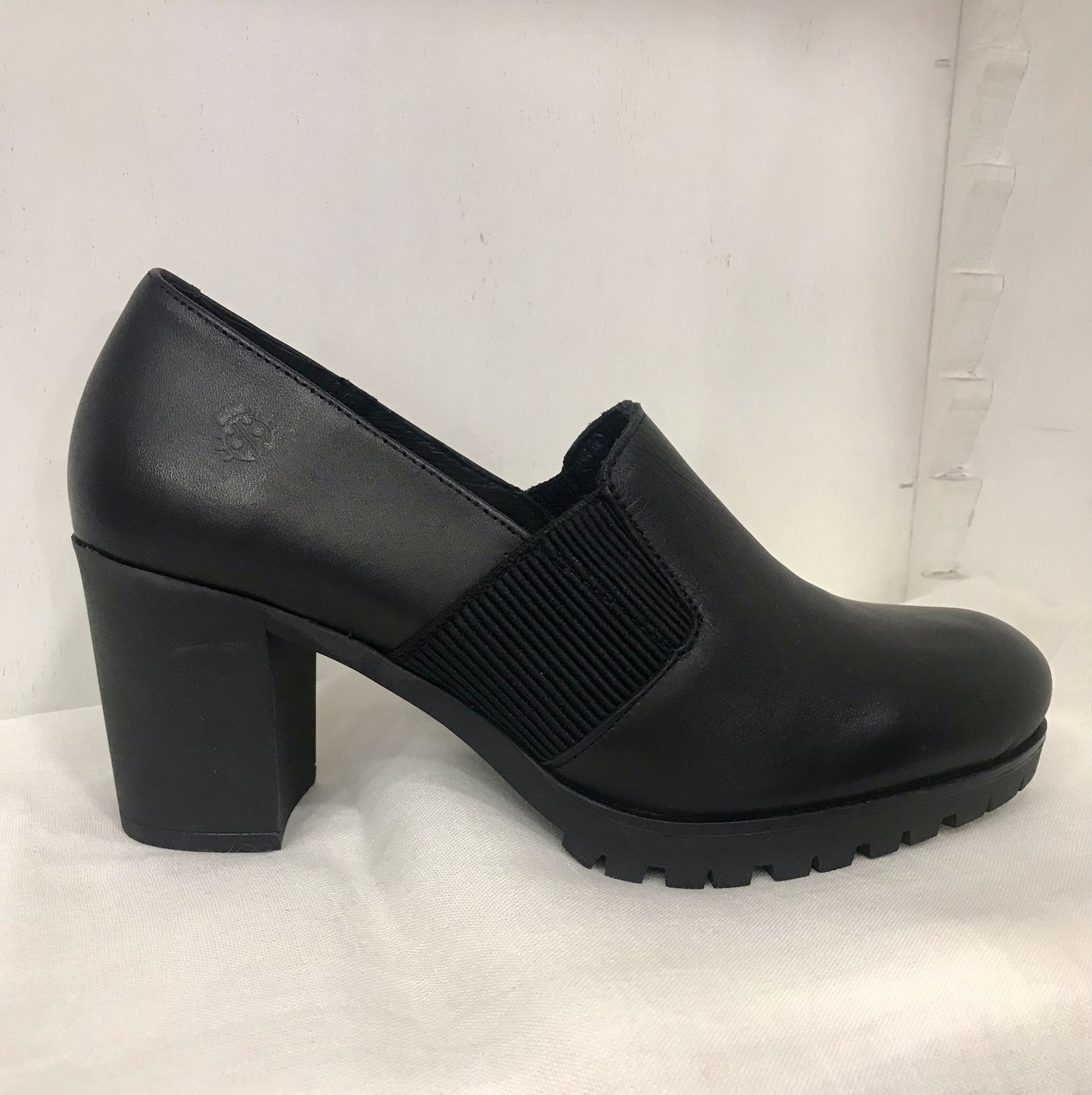 Zapato de tacón, elaborado en piel vacuna suave negra, con un tacón de 6,5 cm con corte exterior de piel vacuna, e interior de piel porcina y textil, para un mayor confort y suavidad. Fabricada en España. Un básico que no te defraudará este invierno. Gran flexibilidad. Corte de piel vacuna. Plantilla acolchada y antideslizante que añade un extra de comodidad. Elaborada mediante un proceso de fabricación artesanal y embalajes sostenibles para respetar el medio ambiente.
